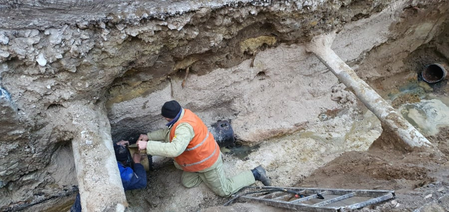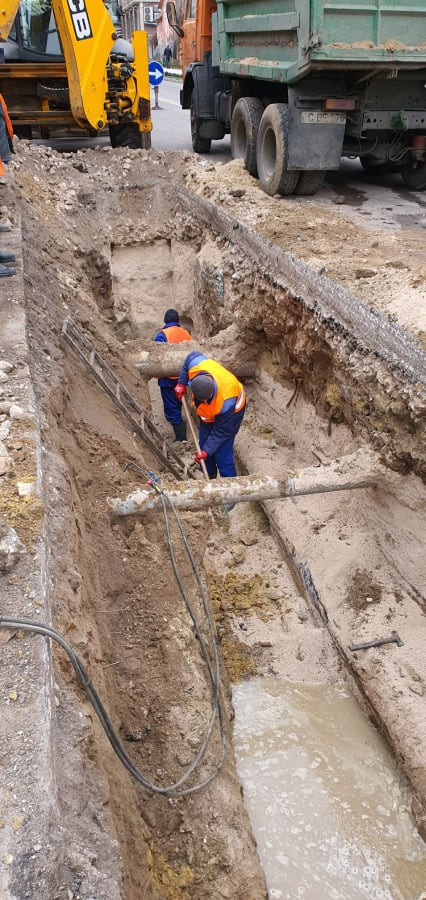 Prin urmare, au fost executate lucrări de înlocuire a rețelelor de apeduct cu D-300 mm pe o porțiune de 30 de m. (vezi foto)