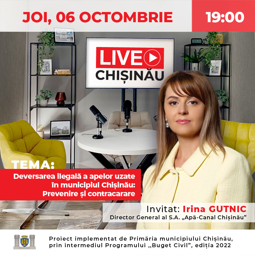 Directorul general al S.A. ,, Apă-Canal Chișinău”, Irina Gutnic va participa la Podcast Chișinău Live!