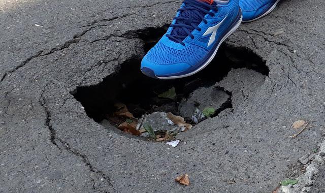 Intervenția nereușită la branșamentul unui bloc a generat o gaură imensă în trotuarul de pe str. Ion Creangă